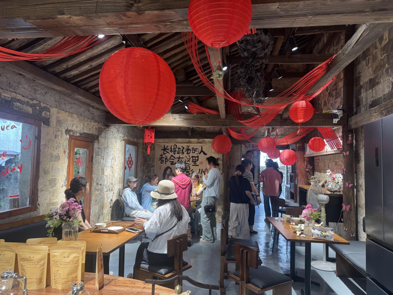在仁里村一座古宅改建的茶铺中◈ღ,茶香袅袅◈ღ。游客们手捧热茶◈ღ,静静聆听主理人讲述三道茶的起源与背后的故事◈ღ。